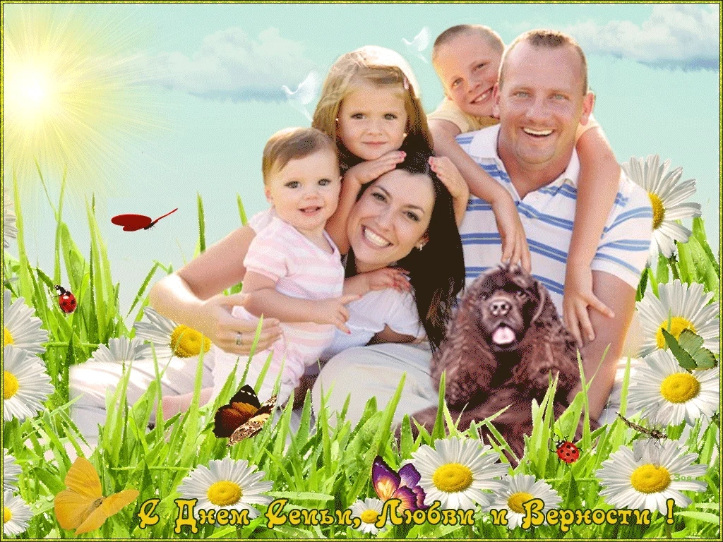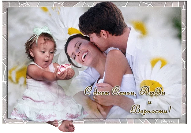 Начиная с 2008-го года в Российской Федерации 8 июля гражданами отмечается семейное торжество — Всероссийский день семьи, любви и верности. Предлагаем красивые и очень душевные анимационные поздравления для ваших родных и близких.