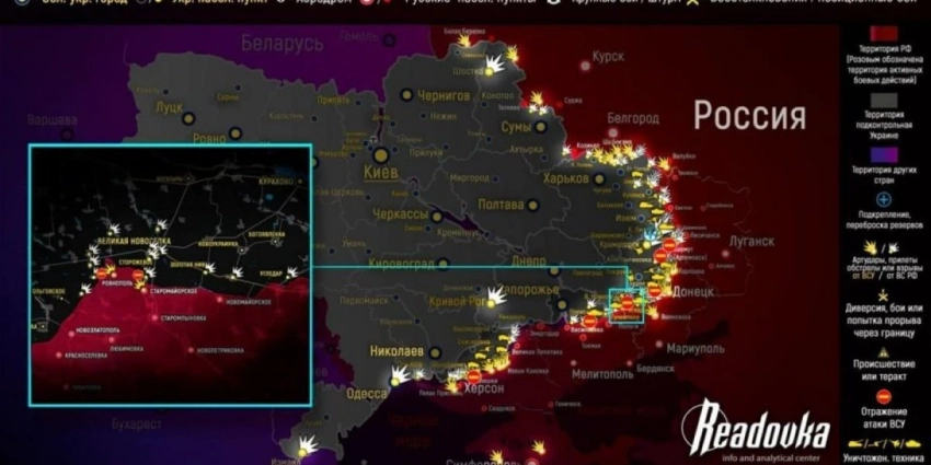 Тем не менее украинские журналисты рапортуют о продолжении «наступательной операции» на отдельных участках фронта. «Как минимум на четырех», сообщает один из украинских телеграм-каналов. Сегодня же стало известно, что российские военные нанесли очередной удар по скоплению живой силы и техники ВСУ. Били с воздуха и ракетными установками на купянском направлении. Сообщается о значительных потерях с украинской стороны. Источник