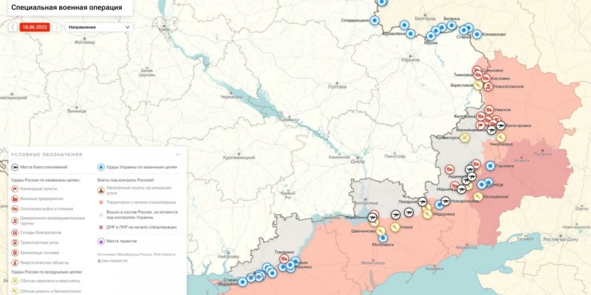 Кроме того, за сутки истребители сбили украинский вертолет Ми-24, силы ПВО перехватили шесть реактивных снарядов РСЗО HIMARS и «Ураган», а также 16 беспилотников. Последние новости о ходе военной спецоперации на Украине на сегодня, 18 июня 2023 года, новая карта боевых действий на Украине в материале «Интересной России».