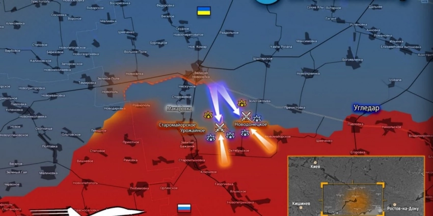 По данным Минобороны, за прошлые сутки в районе Новодонецкого были отражены 3 мощных атаки, потери врага — до 20 боевиков и до трех единиц техники. Также наши обнаружили и накрыли ДРГ, скрытно пробиравшуюся по посадкам. Тяжелые бои продолжаются.