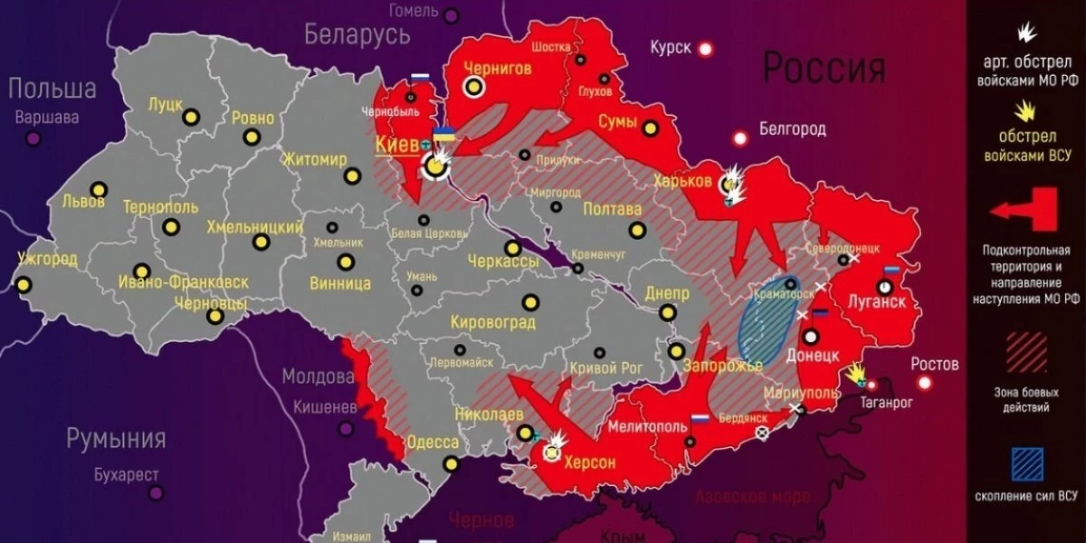 А вот в направлении Запорожья украинская армия уже обстреляла Токмак ракетами. Русские войска на земле пытались наступать в районе Дрожнянки.