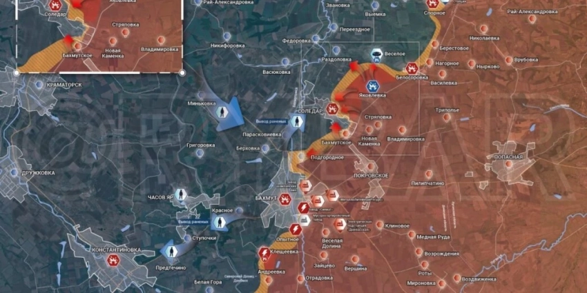 Южнее Бахмута ЧВК «Вагнера» пытается прорвать украинскую оборону со стороны Курдюмовки и Озаряновки. Он также атакует Клещеевку и пытается отбить позиции на восточной окраине самого города. Южнее Соледара ЧВК «Вагнера» снова атакуют Бахмутское. А на север пытаемся наступать от Яковлевки и местной Белогоровки.