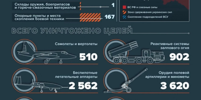Согласно сводке Министерства обороны РФ, российские войска нанесли огневое поражение ротной тактической группе ВСУ, сосредоточенной для наступления в районе населенного пункта Стельмаховка, а также сорвали атаку противника в направлении Червонопоповки.