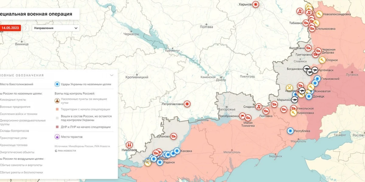 Донбасс сегодня 15 мая 2023. Карта боевых действий, новости с фронта, сводки СВО, где идут бои, спецоперация России на Украине, ЛНР и ДНР итоги