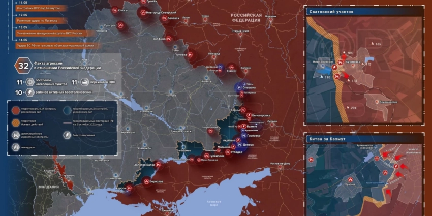 Фронтовая хроника, сводка боевых действий артёмовском и других направлениях фронтов СВО к утру 15 мая 2023 г.: