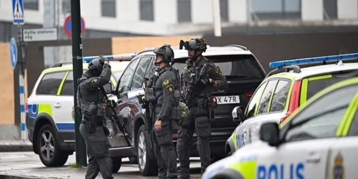 Полицейские на месте стрельбы в Мальме. Швеция. Один человек погиб, один ранен. Август 2022 год.