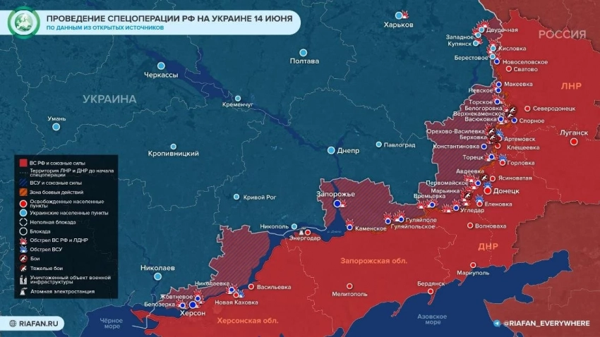 Карта боевых действий на Украине 14 июня июня: что происходит в зоне СВО