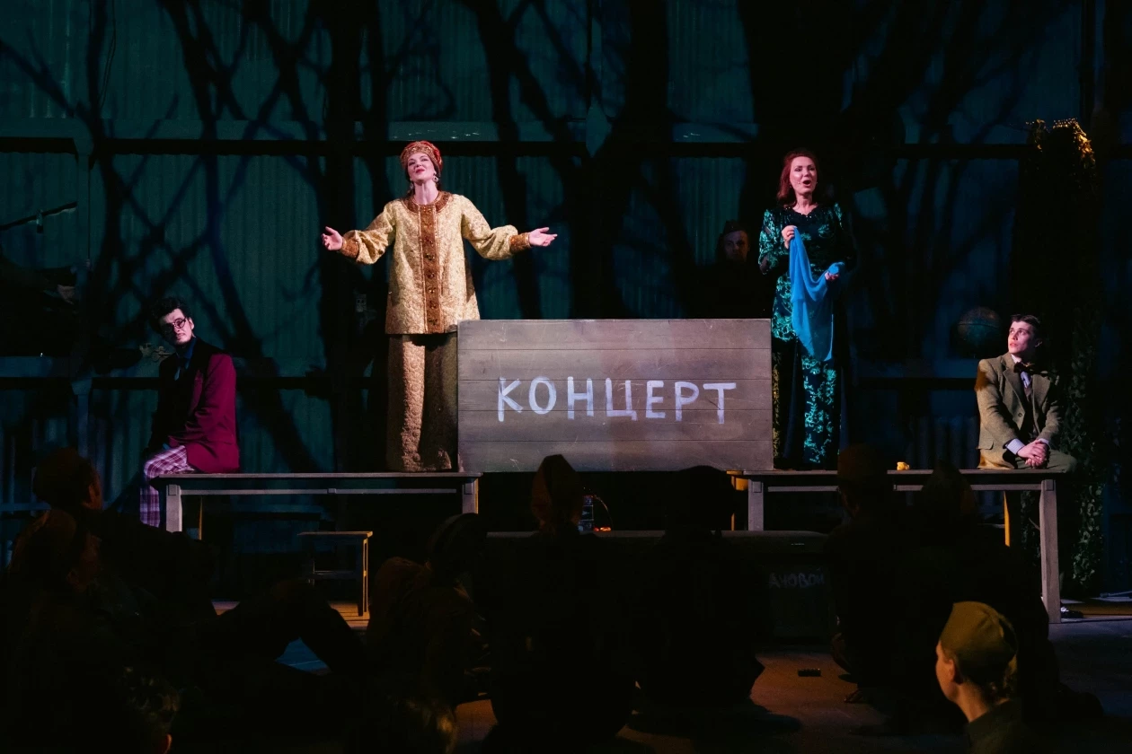 Сцена из спектакля. Фронтовой концерт. Фото: Вадим Горшков, предоставлено Приморским академическим краевым драматическим театром имени М. Горького