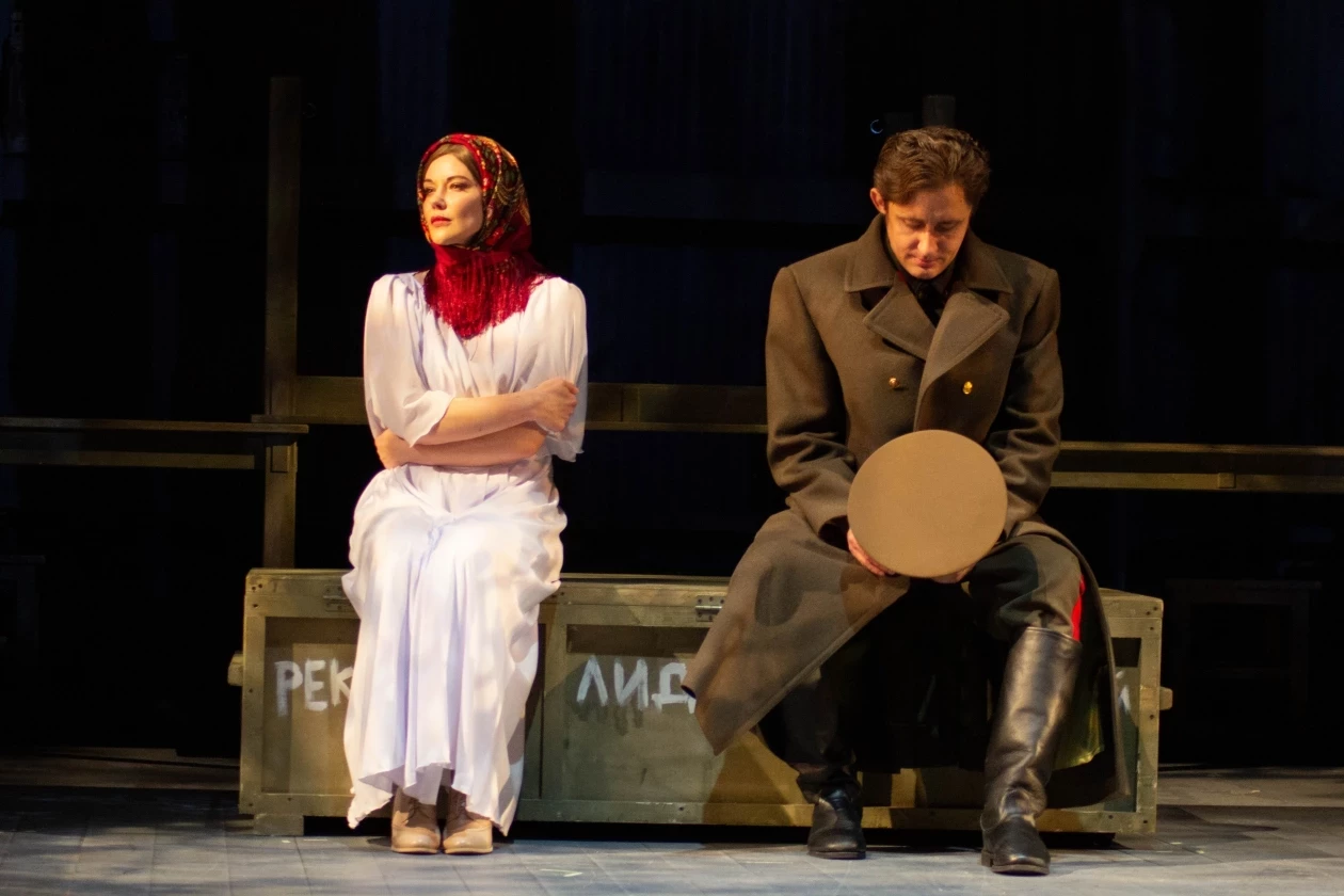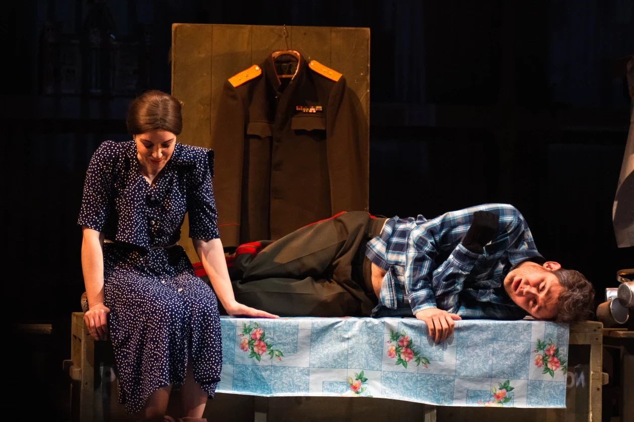 Сцена из спектакля. Русланова и Крюков. Фото: Вадим Горшков, предоставлено Приморским академическим краевым драматическим театром имени М. Горького