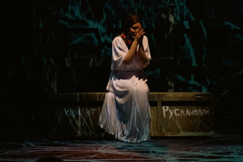Потом девочки споют еще и “Валенки”. В финале спектакля. И такое перекрестье церковного распева с русской народной песней не случайно. И это не просто красивый сюжетный ход. “Валенки”, старинная цыганская плясовая песня, стала русской народной песней в годы Великой Отечественной войны благодаря Лидии Руслановой. Вот как она сама об этом рассказывает: