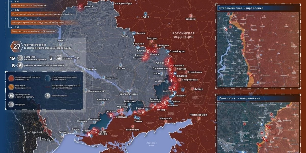 Новая, обновленная карта боевых действий на Украине 17 декабря 2022 года. Актуальные данные на сегодняшний день