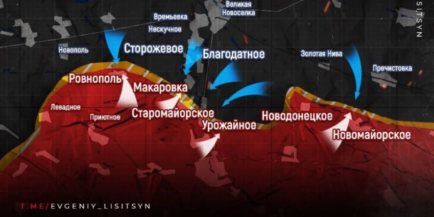 Позднее украинские формирования попытались атаковать позиции ВС РФ в лесополосе между Новодонецким и Урожайным. Артиллерия ВСУ интенсивно обстреливала опорные пункты 37 бригады ВС РФ, прикрывая переброску украинской пехоты на бронетехнике к лесопосадке. На одном из участков подразделения противника вклинились на 150-200 метров. ВСУ пытаются прорвать рубеж на стыке обороны российских войск и продвинуться напрямую к Старомлыновке. Бои на участке продолжаются.