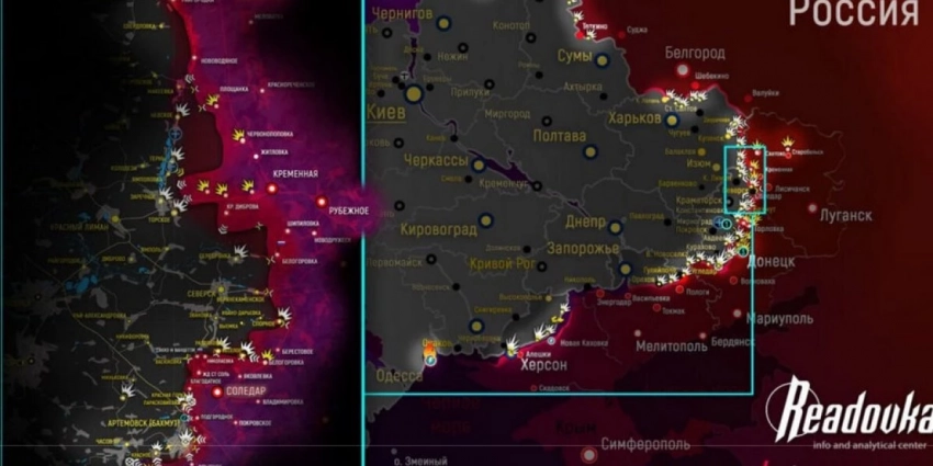 Российские войска уверенно продвигаются в Бахмуте и окрестностях. Украинское командование оценивает ситуацию как критическую. Формирования готовят вторую линию обороны Краматорск — Славянск — Константиновка — Торецк.