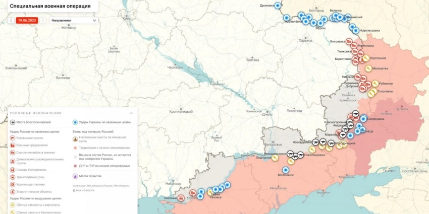 Последние новости о ходе военной спецоперации на Украине на сегодня, 19 июня 2023 года, новая карта боевых действий на Украине в материале «Интересной России».