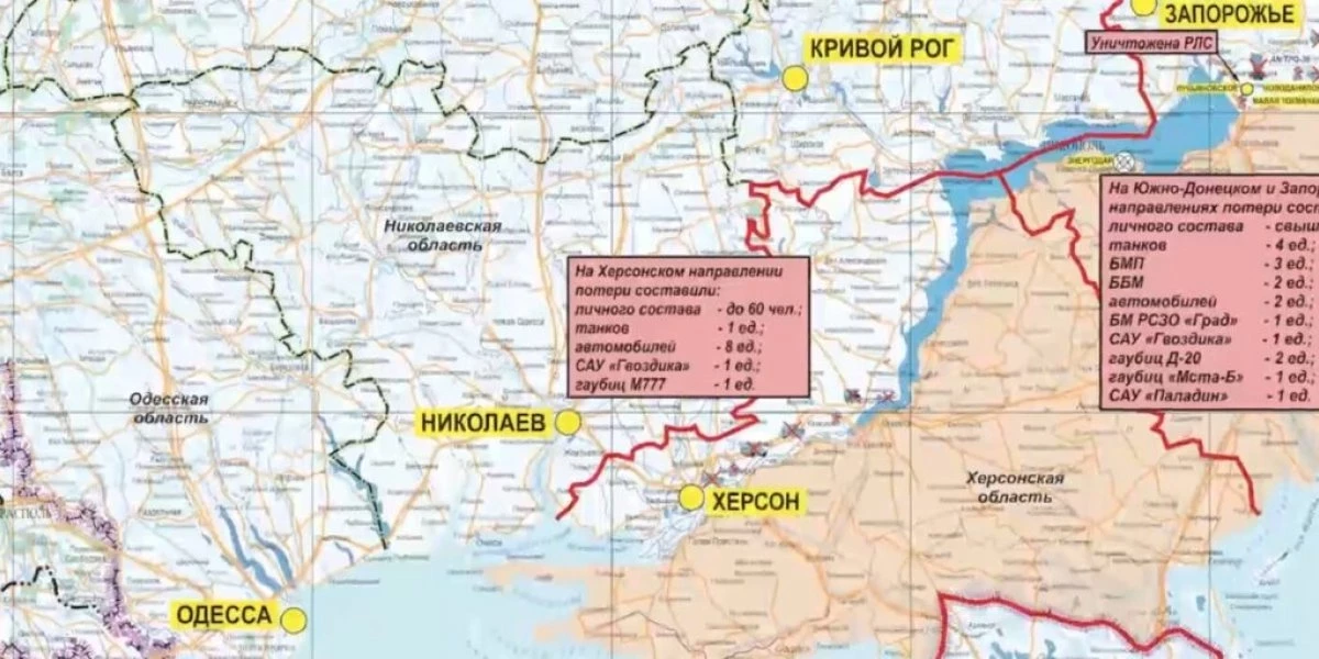Общие потери противника на данных направлениях составили свыше 210-ти украинских военнослужащих и иностранных наемников, четыре танка, три боевые машины пехоты, две боевые бронированные машины, два пикапа, боевая машина РСЗО «Град», самоходная гаубица «Гвоздика», две гаубицы Д-20 и одна «Мста-Б», а также самоходная артиллерийская установка М109 «Paladin» производства США.