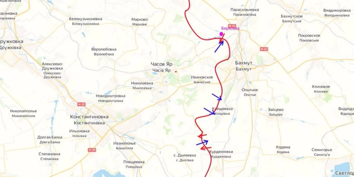 Карта боевых действий на Украине, обстановка к утру 10 июля 2023 г., Бои на Артёмовском направлении