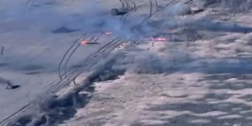 Кадры были сделаны с помощью беспилотника, который заснял передвижение колонны украинской военной техники. Через некоторое время танки и бронемашины начали подрываться на минах. Также можно заметить другую технику, находящуюся в поврежденном состоянии. Вероятно, она также подорвалась на одной из мин.