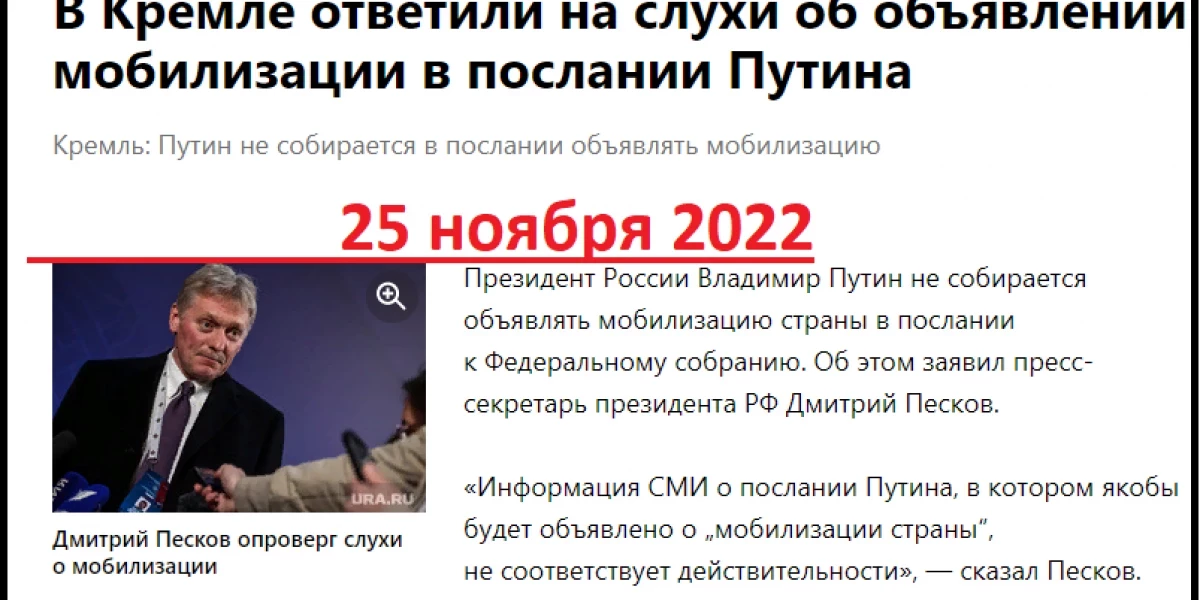 Объявит ли Путин всеобщую или частичную мобилизацию в ходе оглашения послания Президента Федеральному собранию в 20-х числах февраля 2023 года? Последние новости на сегодня?
