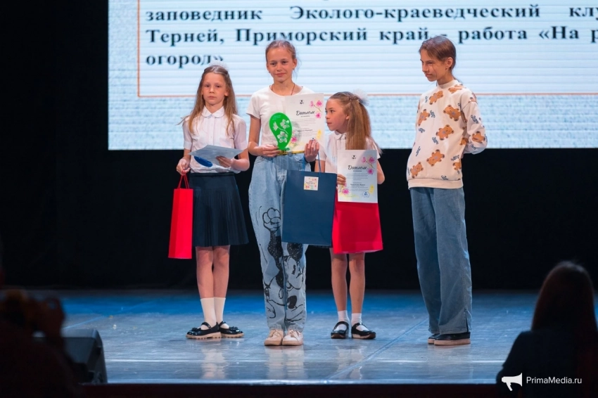 1 место: Бирюков Константин Сихотэ— Алинский заповедник Эколого-краеведческий клуб “Урагус” п. Терней, Приморский край с работой “На разведку в мамин огород”;
