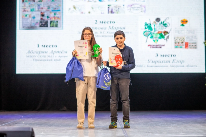 2 место: Певчев Тимофей и Мельникова Таисия “ДВЦНО” Школа одаренных детей г. Владивосток, Приморский край с работой “Знакомьтесь, актинидия”;