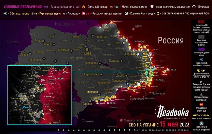 Украина сегодня 16 мая 2023, последние новости: ВС России продвигаются. Спецоперация (СВО) России сегодня, карта боевых действий 16.05.2023