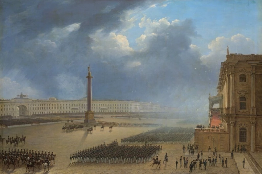 Григорий Чернецов. Парад по случаю открытия памятника Александру I в Санкт-Петербурге 30 августа 1834 года, 1834. Фото: ГТГ