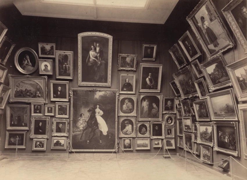 Зал № 2. Торцовая стена. Произведения Карла Брюллова, Федора Бруни, Алексея Максимова, Сергея Зарянко и др., 1900. Фото: ГТГ