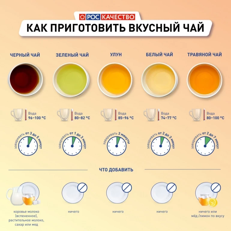 По мнению экспертов, чай будет идеальным, если заваривать его при определённой температуре и выдерживать строго отведённое количество времени. Каждый тип чая (чёрный, зелёный, белый, улун) имеет свою оптимальную температуру воды, которая поможет раскрыть его вкус и аромат. Например, для зелёного чая это около 80 градусов.