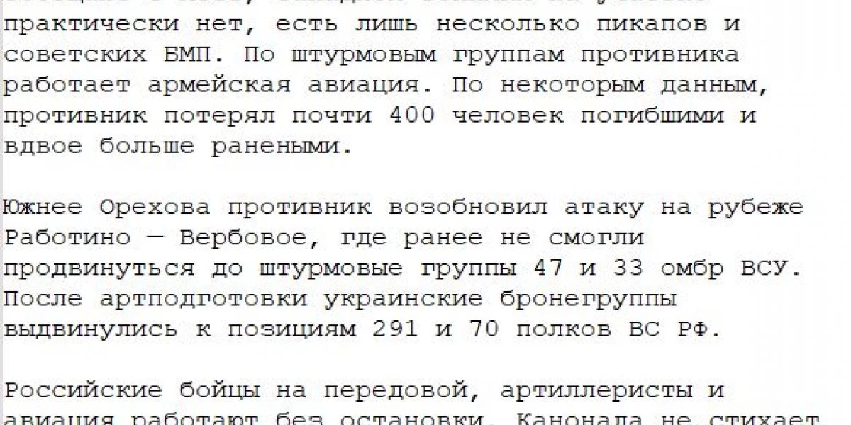Итак, закончился еще один очень тяжелый день на запорожском направлении. Противник вновь попытался прорвать нашу оборону под Ореховом, но лишь нарвался на очередные крупные потери.