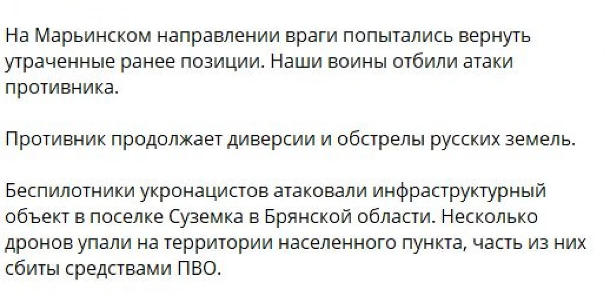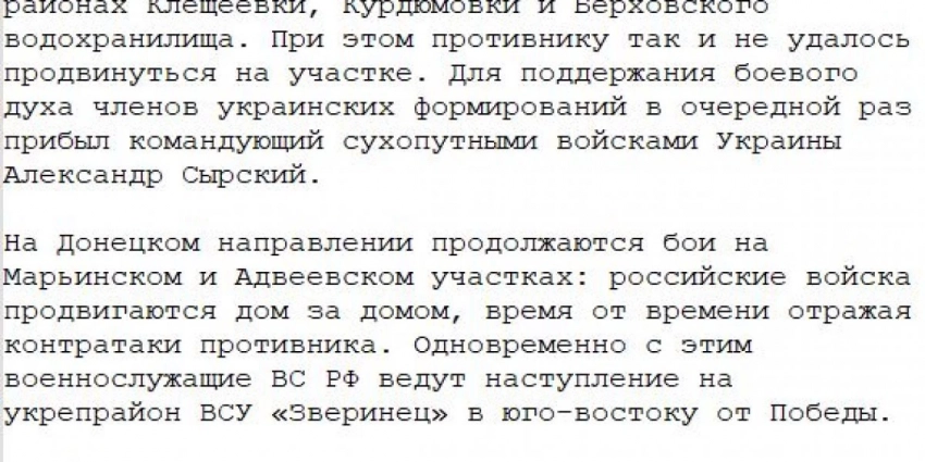 Отмечается также, что несмотря на натиск противника в этом района российские военные продолжают держать оборону.