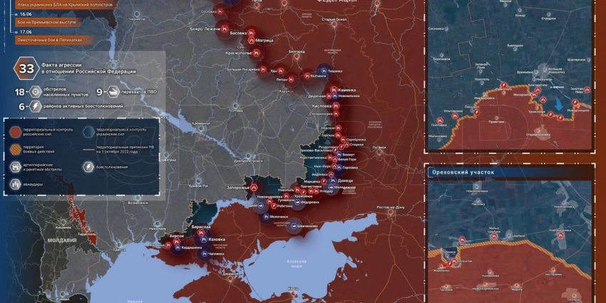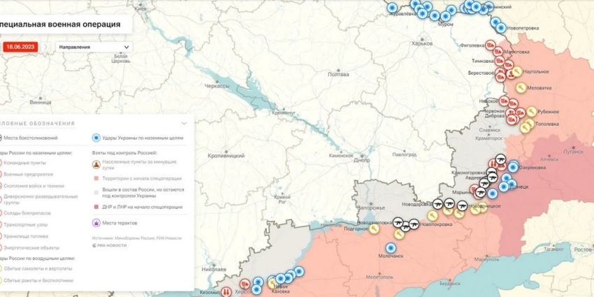 Карта боевых действий на Украине, к утру 19 июня 2023г., от РИА Новости