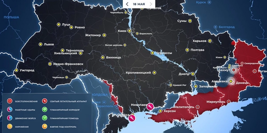 Карта боевых действий на Украине сегодня 22.05.2023 в реальном времени на сейчас
