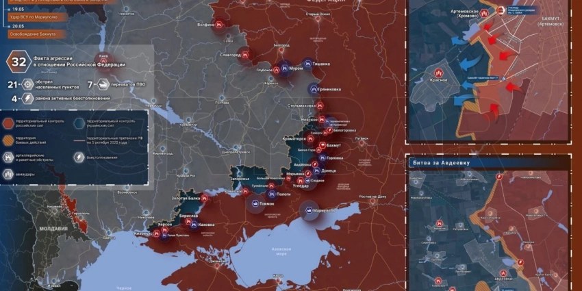 - Карта боевых действий на Украине на сегодня, 22 мая 2023 года