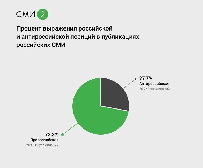 На основании таблицы точек зрения ученые рассчитали процент выражения российской и антироссийской позиций в публикациях отечественных СМИ.