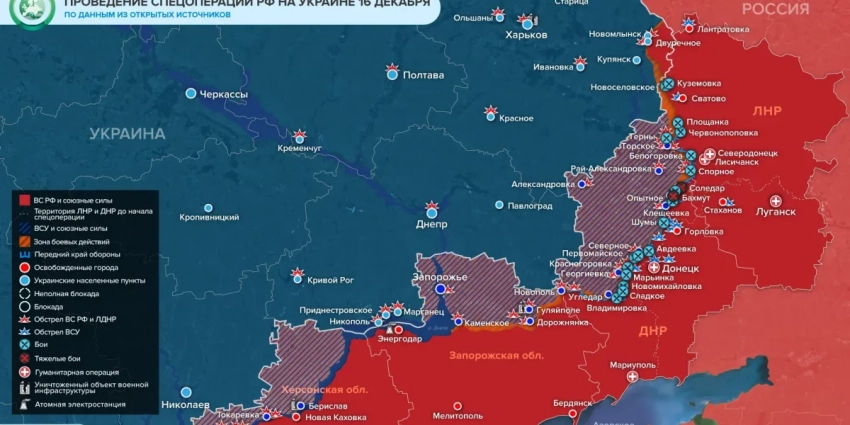 Реальная карта боевых действий на Украине на 17 декабря 2022: ситуация на сегодня, последние новости специальной военной операции (СВО) с передовой