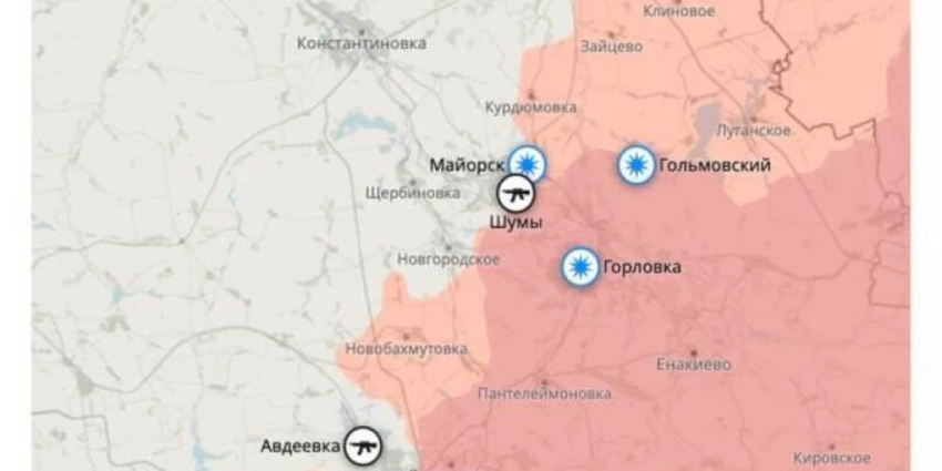 На данной карте боевых действий видно основное направление, где сейчас происходят самые ожесточенные бои и выдавливание украинских войск с территории российского Донбасса.