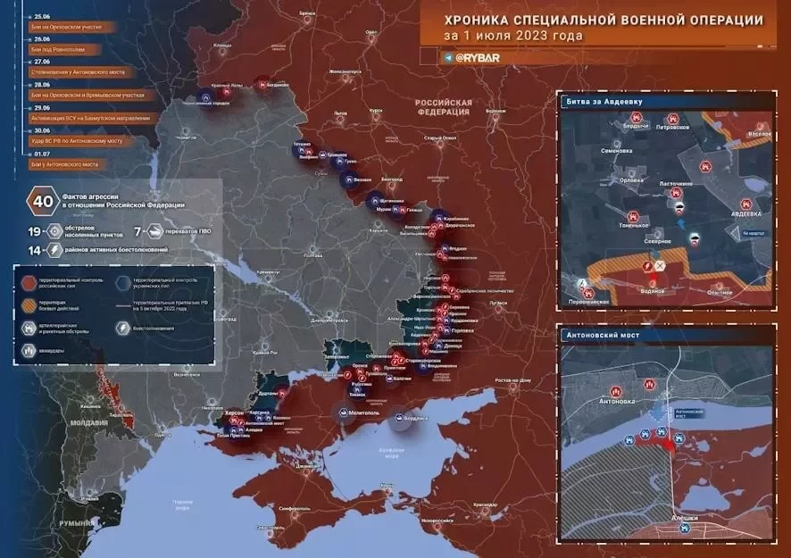 Украина сегодня 2 июля 2023, последние новости: новые удары армии РФ. Спецоперация (СВО) России сегодня, карта боевых действий 02.07.2023