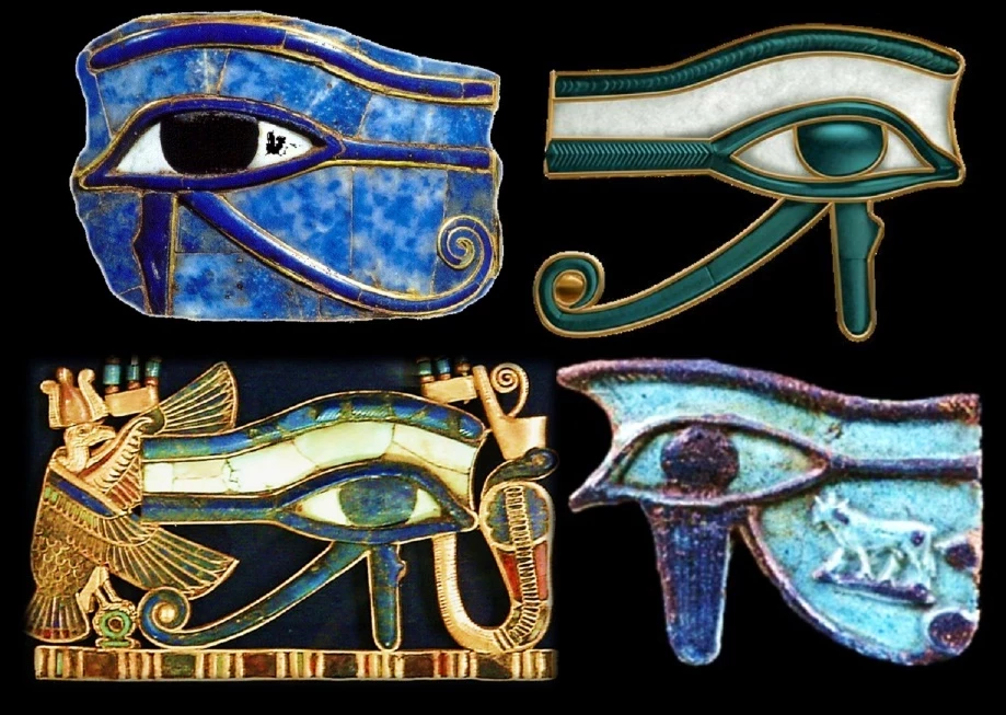 Символ ока в Древнем Египте всегда имел положительное значение. Даже его иероглифическое начертание имеет значение защиты. Составной иероглиф уаджет значит «охраняющий глаз», и ассоциируется с изображением сокола – символа бога Гора.