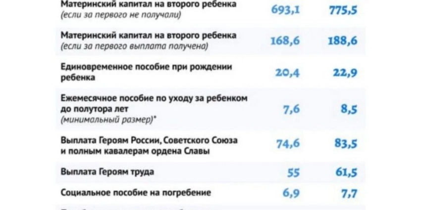 Индексация затронет и отдельные пособия для семей с детьми – например, единовременное пособие при рождении ребенка, ежемесячное пособие по уходу за ним.