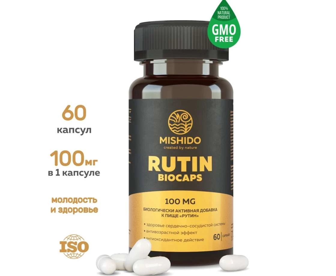 Рутин 60 капсул Rutin Biocaps MISHIDO Витамин Р для глаз антиоксиданты для сердца, сосудов, кожи, от аллергии, холестерина, отеков