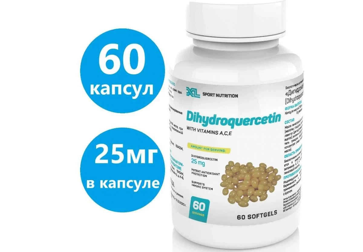 Дигидрокверцетин Dihydroquercetin with A, C, E , 60 капсул, антиоксидант с витаминами А, С, Е