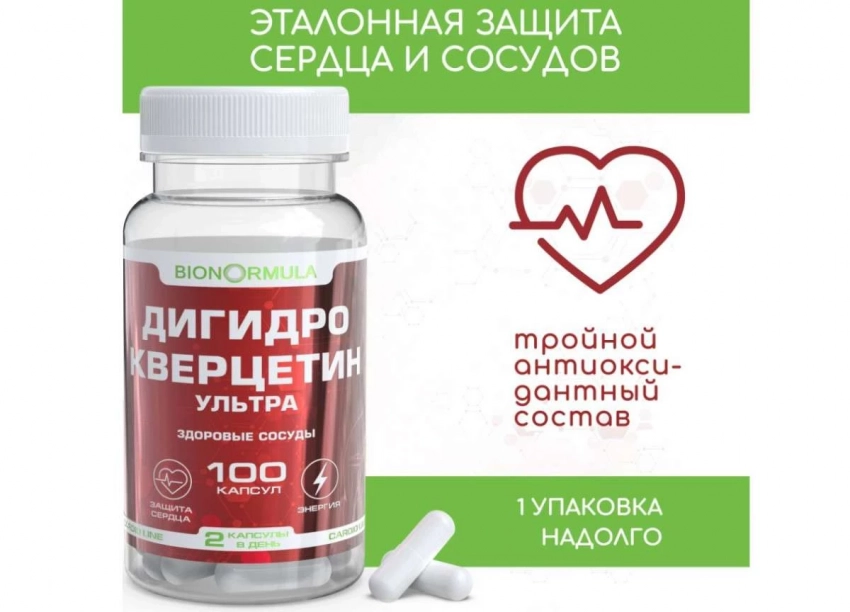 Витаминный комплекс Bionormula дигидрокверцетин ультра для здоровья сердца и сосудов / Антиоксидант / 50мг, 100 капсул