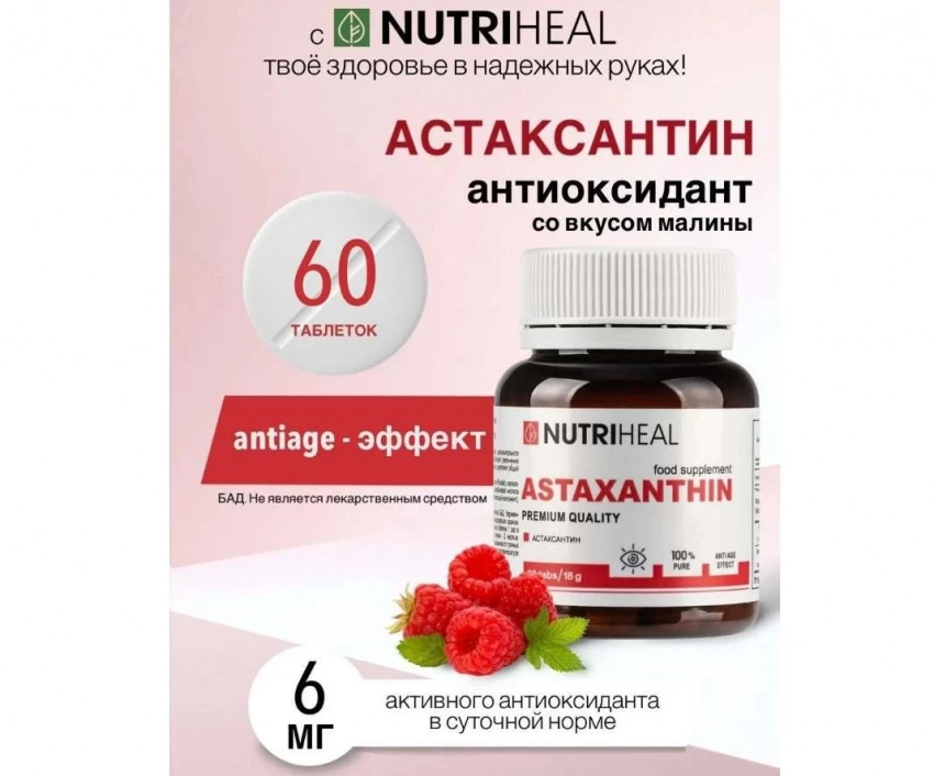 Астаксантин антиоксидант, улучшает кровоток, для зрения, стимулирует коллаген, жевательные таблетки, Astaxanthin Nutriheal
