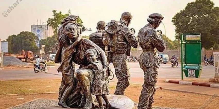 Как видим, вся композиция символизирует собой защиту местных жителей от местных же бандитов из радикальных исламских группировок. Отмечу, что, кроме ЦАР, оркестр имени товарища Вагнера дал показательные концерты в Мали, Мозамбике, Судане, Эритрее, Эфиопии и целом ряде других африканских стран.