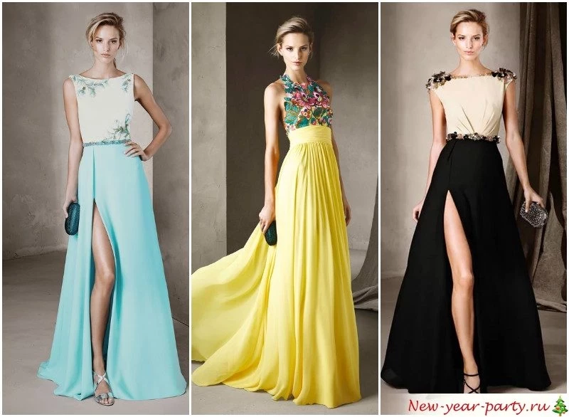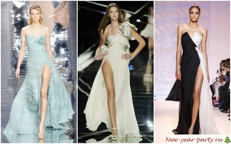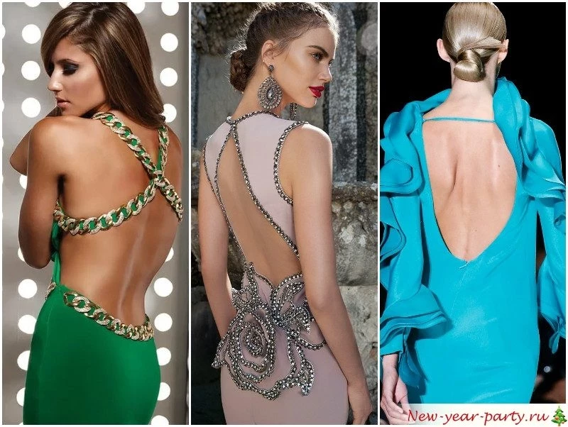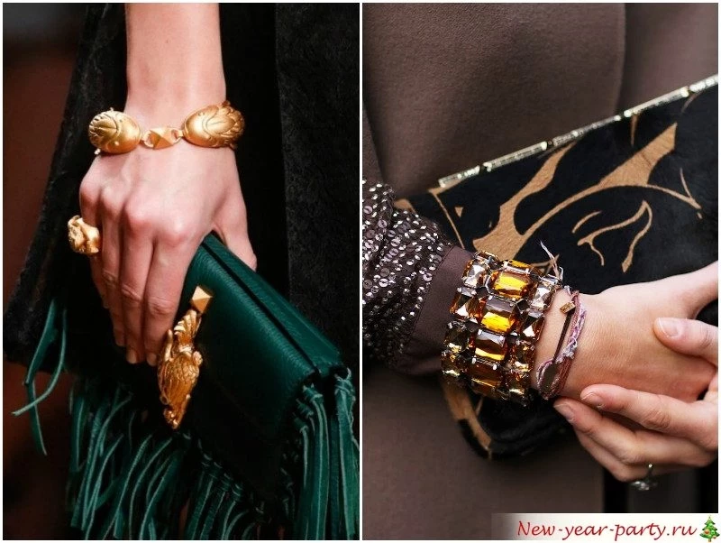 Ваш облик в новогоднюю ночь должен состоять из притягивающихся противоположностей: закрытый ворот и открытая спина, длинная юбка и высокий разрез, спокойный основной тон и яркая бижутерия, строгое платье и экстравагантная сумочка.