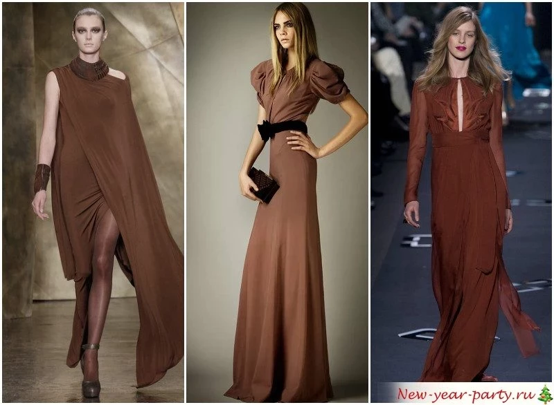 Эти цвета особенно хороши в гладких тканях – шелк, атлас-стрейч, тонкий габардин, трикотаж. Предпочитаете кружево – обратите внимание на темный шоколад и нежный экрю.