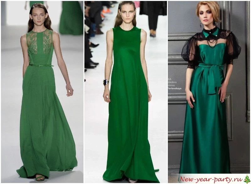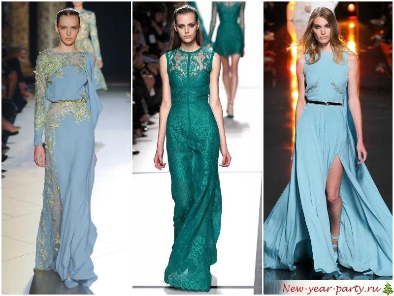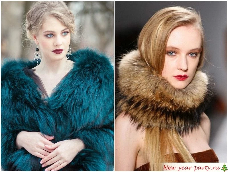 Найдите равновесие между синим и зеленым. Это ваши тона для встречи Нового года. А если они абсолютно не подходят, дополните образ мехом – горжеткой, боа, помпоном на сумке или туфлях, оригинальным браслетом.