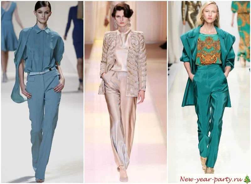 Погрузитесь в свою стихию. Встречайте Новый год в цвете воды – голубом, сером, морской волны, не повредит немного люрекса или пайеток. Предпочтителен простой, элегантный крой в сочетании с оригинальной обувью и матовыми аксессуарами.