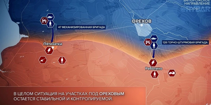 Внимание обращается на тот факт, что в данный момент боевые действия гремят у населённых пунктов Пятихатки и Жеребянки, расположенных на Васильевском участке. На данном отрезке линии боевого соприкосновения обороняются мотострелки ВС РФ. Там они выявили отряд врага и провели воздушную атаку, позволившую ликвидировать восьмерых боевиков. Ещё пять оказались ранены.