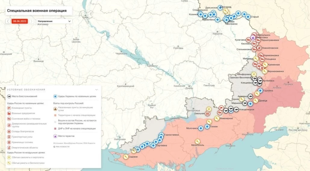 Украина сегодня 8 июня 2023, последние новости: российские войска активны. Спецоперация (СВО) РФ сегодня, карта боевых действий 08.06.2023